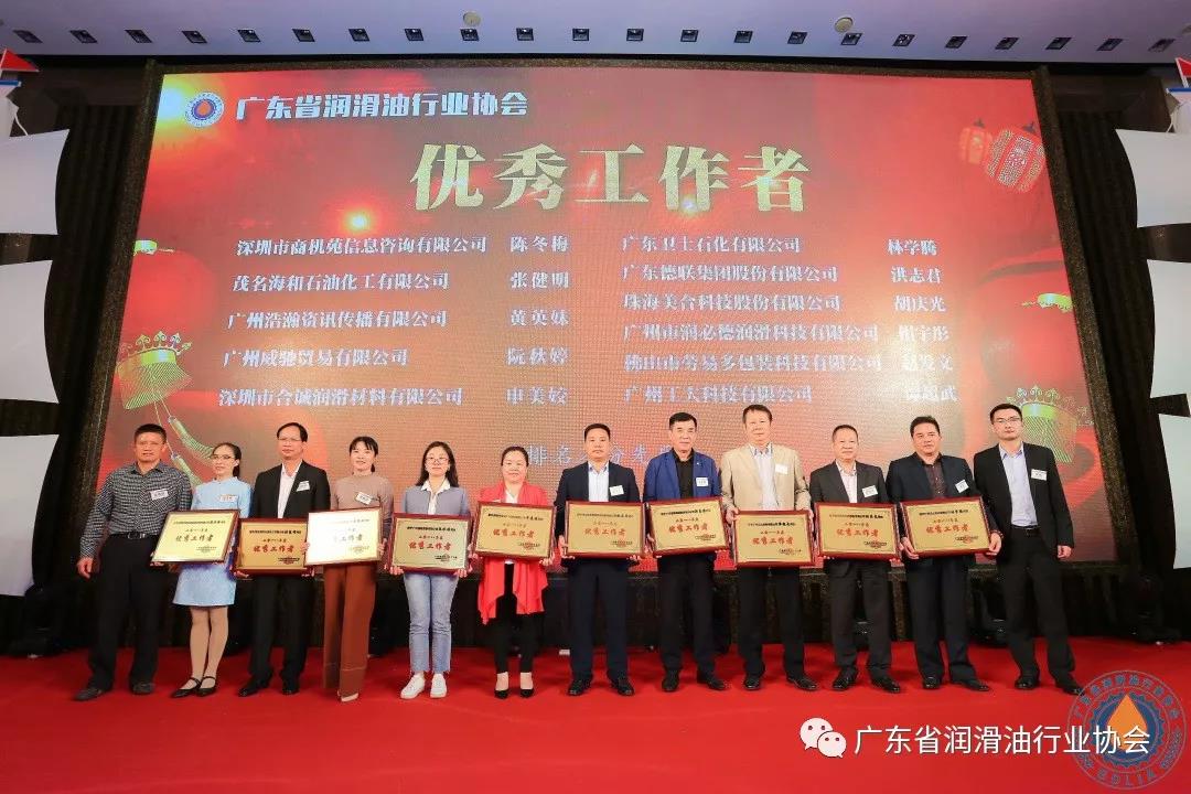 恭喜深圳市商机苑信息咨询有限公司陈冬梅女士、广东卫士石化有限公司林学腾先生、茂名海和石油化工有限公司张健明先生、广东德联集团股份有限公司洪志君先生、珠海美合科技股份有限公司胡庆光先生、香港浩瀚资讯传媒集团有限公司黄英妹女士、广州市润必德润滑科技有限公司相宇彤女士、广州威驰贸易有限公司阮秋婷女士、佛山市劳易多包装科技有限公司赵发文先生、深圳市合诚润滑材料有限公司申美姣女士、广州工大科技有限公司谭超武先生获得了协会颁发的“2018年度优秀工作者”荣誉称号!