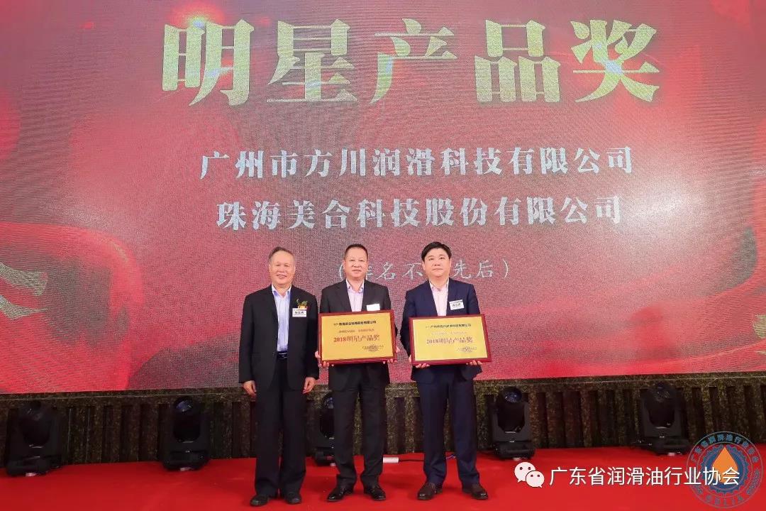 恭喜广州市方川润滑科技有限公司的“多功能防锈油、多功能切削液”产品、珠海美合科技股份有限公司的“金美合引领R350+全合成发动机油”产品获得了“2018年度明星产品奖”!