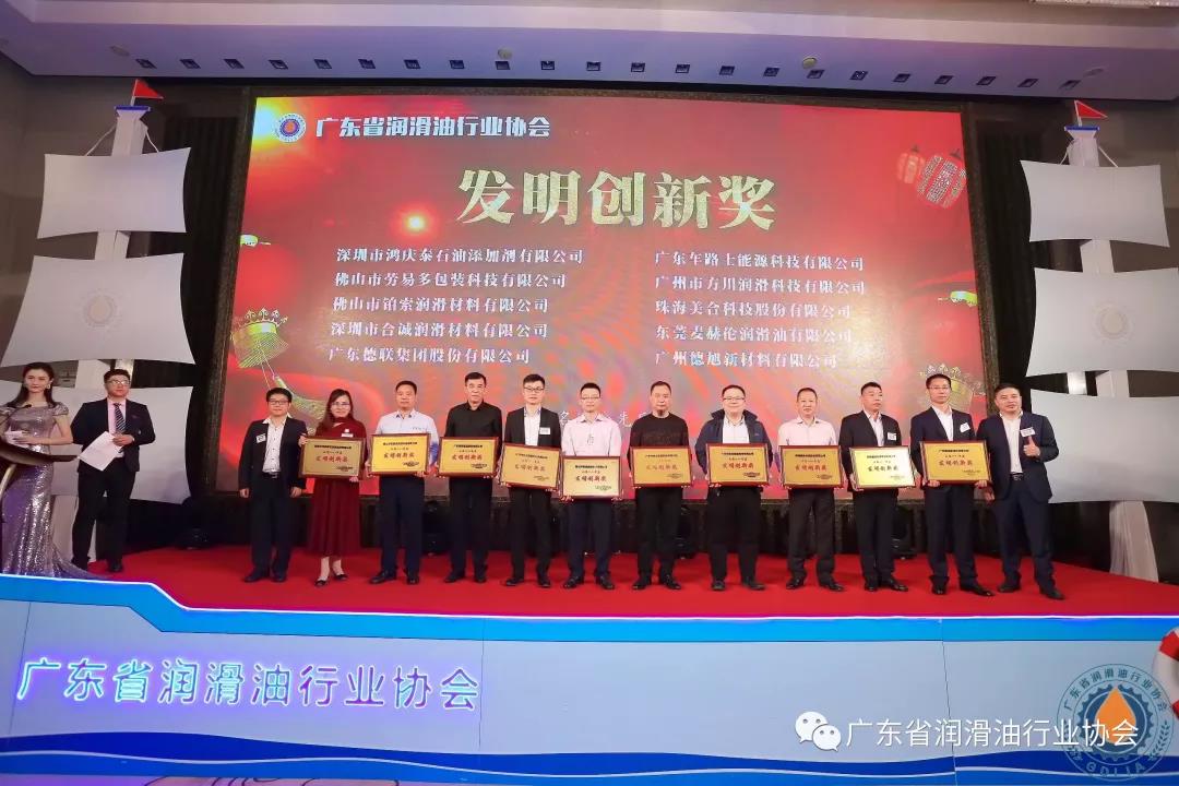 恭喜深圳市鸿庆泰石油添加剂有限公司、佛山市劳易多包装科技有限公司、佛山市铂索润滑材料有限公司、深圳市合诚润滑材料有限公司、广东德联集团股份有限公司、广东车路土能源科技有限公司、广州市方川润滑科技有限公司、珠海美合科技股份有限公司、东莞麦赫伦润滑油有限公司、广州德旭新材料有限公司获得了“2018年度发明创新奖”。