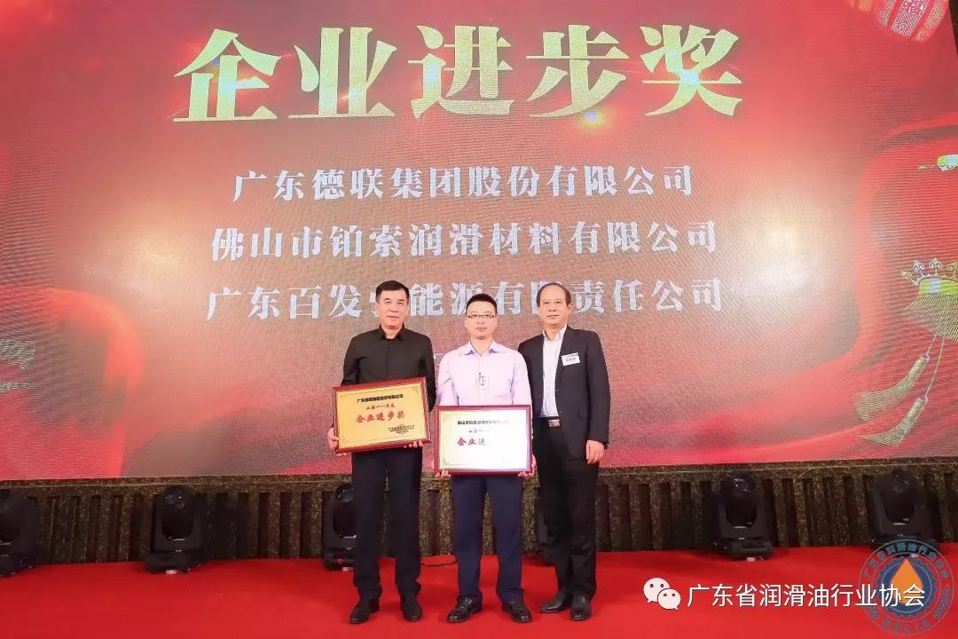 恭喜广东德联集团有限公司、佛山市铂索润滑材料有限公司、广东百发弘能源有限责任公司获得“2018年度企业进步奖”。