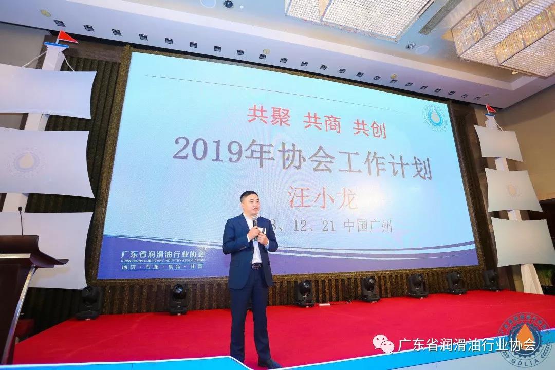 广东省润滑油行业协会 汪小龙会长作了《2019年协会工作计划》演讲。以“一”到“十”概括了协会明年的计划重点:一个高端环保润滑材料产业园;两场主题技术研讨;三次国际交流;四个年度大奖项;五家以上会员联合组团参加展览;六项以上团体标准发布;七大行业会议合办;八省行业协会交流;九大服务;协会十大职能。